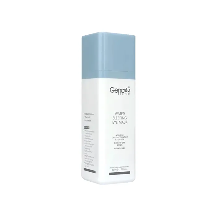 ماسک خواب دور چشم ژنوبایوتیک بافت سبک و جذب سریعی دارد. این ماسک دور چشم ایرانی یکی از بهترین محصولات برای رفع چروک‌های اطراف چشم و پر کردن گودی چشم محسوب می‌شود. این محصول حاوی عصاره خیار بوده و خواص ضدالتهابی و رطوبت رسانی بسیار قوی دارد. هیالورونیک اسید موجود در ماسک شب ژنوبایوتیک با قابلیت نفوذ و حفظ آب سلولی، رطوبت پوست را در تمام طول شب و در لایه‌های عمیق پوستی حفظ کرده و از خطوط پنجه کلاغی دور چشم نیز جلوگیری می‌کند. ترکیبات موثر دیگر این ماسک خواب چشم، ویتامین سی است. vitamin c خاصیت آنتی اکسیدانی و روشن کننده داشته و ضمن کلاژن سازی اطراف چشم، موجب رفع کدری دور چشم نیز می‌شود.